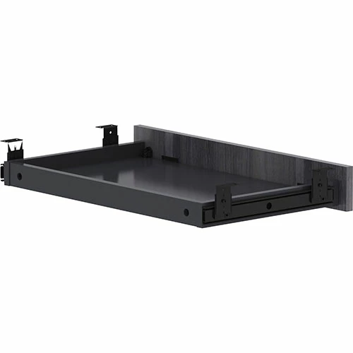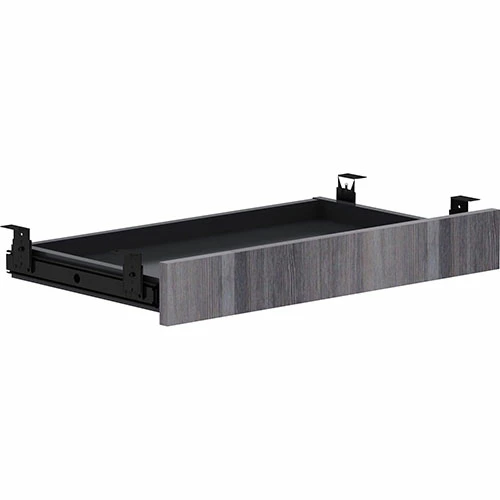 Universal center drawer can be easily attached to desks in the Lorell Essential Series and most other desks with an adjustable mount. Drawer slides under the desk and out for easy access. Drawer features a durable laminate surface.