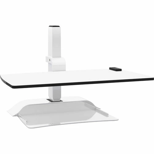 Electric Desktop Sit-Stand Desk Riser features a versatile remote control surface that rises to allow you to sit or stand while working. Height adjusts from 1-3/8″ to 37″ using a remote control with simple up/down buttons. Design is device-friendly with two USB ports and two outlets for easy connectivity and charging capabilities. 10 lb. weight capacity can handle the weight of most computers. Base is constructed of sturdy steel with a powder-coat finish. Laminate top measures 27-9/16″ x 15-9/16″.