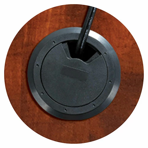 Rectangular desk shell is part of Lorell Essentials Series Laminate Furniture with high-quality laminate construction and metal-to-metal, cam-lock connections. Cherry laminate top is 1″ thick for durability. Use the two grommet holes in the top for easy cord routing. Design also includes a full modesty panel for privacy, 3mm PVC edges and adjustable feet.
