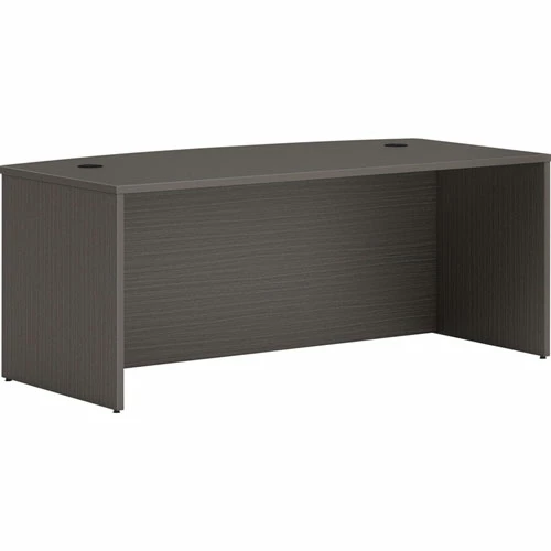 This 72″ wide bowfront desk shell is part of the HON Mod Desk Collection that delivers simplicity and adaptability to enhance your productivity. The contemporary design feels perfectly at home in either a private office or an open floor plan. Bowfront desk is the perfect way to get personal work done while also offering plenty of space for visitors to collaborate. The bowfront extends an extra 6″ to provide additional leg space and valuable worksurface area. Desktop grommets help organize power and data cables. Metal-to-metal fastening system allows precise assembly. Durable, Slate Teak laminate is scratch-resistant, spill-resistant and stain-resistant. Slate Teak matches other Mod elements (sold separately) so you can create an office suite to fit your needs.