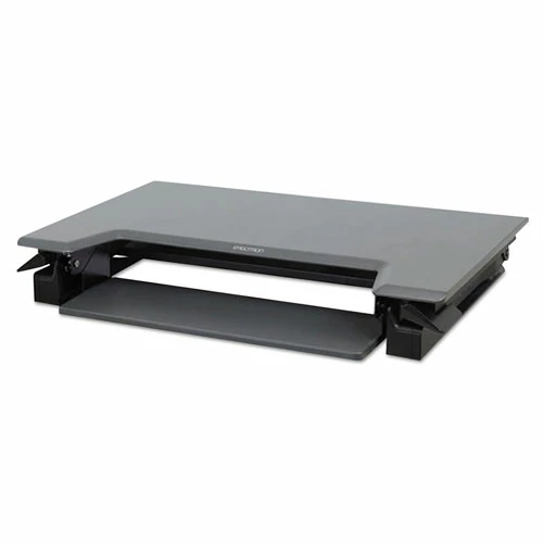 Presenting an ultra easy standing desk solution, which quickly converts a tabletop into a healthy sit-stand workstation. Simply place the WorkFit-T on an open surface and youβre ready to work! WorkFit-T saves space because it moves straight up and down, always staying within the footprint of your desktop. The platform is extremely stable throughout its range of motionβone can freely lean on it while working without worry of tip or height-drop.