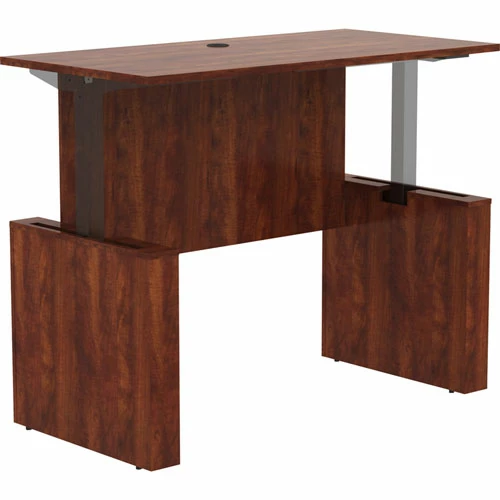 Sit-to-Stand Desk Shell is part of Lorell Essentials Series Laminate Furniture with high-quality laminate construction and metal-to-metal, cam-lock connections. Cherry laminate top with 3mm PVC edges is 1″ thick for durability and features a grommet for easy cord management. Set includes a full modesty panel for privacy and leg panels with adjustable feet. With a height range of 27-1/2″ to 47″ , the Lorell Sit-to-Stand Electric Adjustable Bar (sold separately) raises the desk from 29″ to 49″ high.
