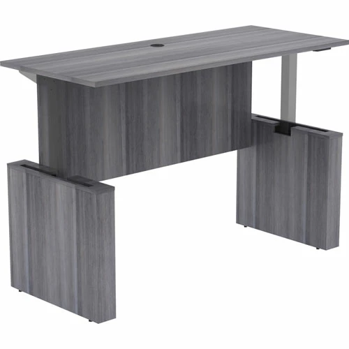 Sit-to-Stand Desk Shell is part of Lorell Essentials Series Laminate Furniture with high-quality laminate construction and metal-to-metal, cam-lock connections. Weathered Charcoal laminate top with 3mm PVC edges is 1″ thick for durability and features a grommet for easy cord management. Set includes a full modesty panel for privacy and leg panels with adjustable feet. With a height range of 27-1/2″ to 47″ , the Lorell Sit-to-Stand Electric Adjustable Bar (sold separately) raises the desk from 29″ to 49″ high.