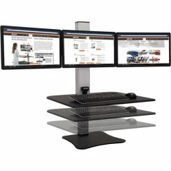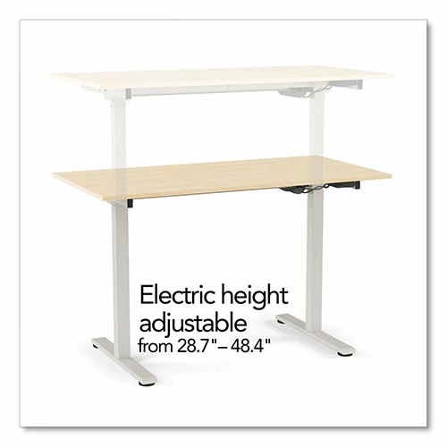 Easily alternate between standing and sitting with the Essentials Electric Sit-Stand Two-Column Workstation. The two-stage base features a single, electric-motor lift system and an intuitive two-button control set (located near the right-hand column, just under the worksurface) to allow you to quickly and easily adjust the worksurface height to accommodate your preferences, from moment to moment. The sturdy metal base also features an open, table-like two-column design to ensure stability without forcing you to sacrifice legroom. Durable, laminated particleboard worksurface features a realistic woodgrain finish for a clean, stylish look. Ideal for both home offices and commercial workspaces. Assembly required.