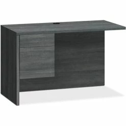 Left return with 3/4 pedestal is a part of HON 10500 Series Wood Laminate Furniture. To create an L-shaped layout, use with the 10500’s right-pedestal desk. It can also be used with desk shells, peninsulas and corner units. Left return with formal, full-height modesty panel features one box and one file drawer. Locking drawers offer five-sided construction for easy drawer alignment. Interchangeable, core-removable lock makes rekeying quick and easy. Box drawer operates on ball-bearing suspension with 3/4 extension. File drawer extends fully on ball-bearing suspensions. Included hangrails are designed for side-to-side letter-size or legal-size filing and front-to-back letter-size filing. Top and end panels are made with durable, thermal-fused laminate over durable, 1-1/8″ thick, solid-core high-performance particleboard and resist warping, scratches and stains. One-cord, pass-through, 3″ grommet in the top is designed to reach electrical wall outlets while routing wires and cables.
