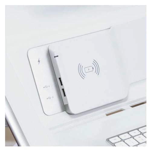 Built-in charging station with wireless charging stand that makes staying productive effortless. Patent-pending Smooth Lift Technologyโข keeps your workstation stable and makes changing positions effortless. Contains Microbanยฎ antimicrobial technology for powerful, continuous product protection against bacteria. Features 22 different height settings and 17โ of vertical adjustment so you can work in a position thatโs perfect for you. Innovative cord management with rear USB ports for your keyboard and mouse allows your entire workspace to move freely with you. Integrated 2-port USB charging station also features wireless charging for Qi-enabled devices. Arrives fully assembledโno complicated instructions, no mounting, just unpack and get started. Holds up to 35 lbs. Compatible with Fellowesยฎ Lotusโข Monitor Arm Kits-not included.
