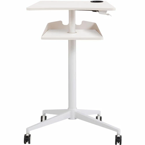 Part of the Safco Active Collection, the Vum Mobile Workstation was designed with flexible working environments in mind. Durable workstation was built to be both functional and adaptable so it’s great for on-the-go or to anchor a home office. It is mobile on four casters (two locking) and features a plastic cup holder and dual worksurfaces. The top adjusts in height 12-1/4″ , and the secondary shelf is stationary. Secondary shelf has a convenient hook for personal items. Safco Active products are designed to promote active movement throughout the day in many workplace settings.