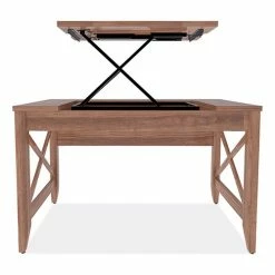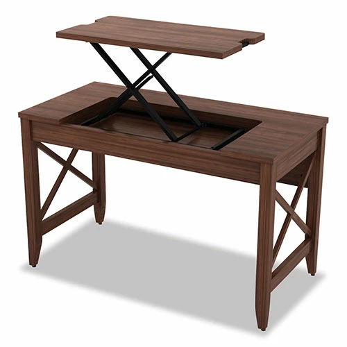 Writing desk with built-in height adjustable work surface. Ideal for the home or small office. Lift portion of the desk surface has infinite height adjustability that can be locked in several positions within a 14″ range. Lift portion easily returns to seated height and remains flush with top surface. Stylish tapered legs with leveling glides to adjust for uneven floors.
