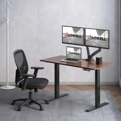 Promo 👍 Desk, Height-Adj, 48″x24″x28.9″-47.2″ , Walnut/Black 👏