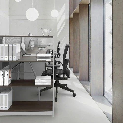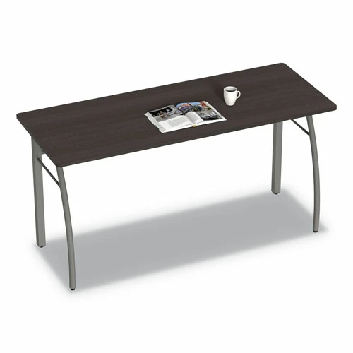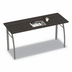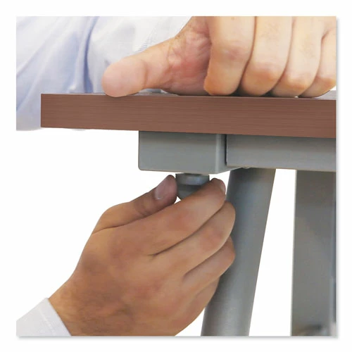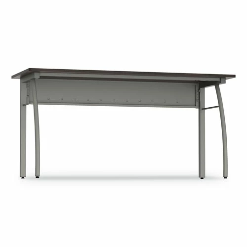 Scratch- and stain-resistant woodgrain laminate with durable edge and strong powder coated steel frame. Adjustable leveling glides for stability. Quick and easy assembly in minutes with no tools required. Configure multiple desks to perfectly fit your space. Includes metal modesty panels. Pedestals fit under desk.