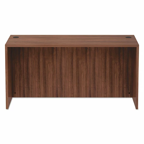Commercial grade laminate work surface and side panels are water-, scratch- and stain-resistant. Charcoal accent line under work surface adds a distinctive touch. Protective edge banding helps prevent damage from bumps. Two grommets for cable and wire management. Full-length modesty panel for privacy.