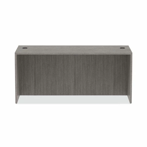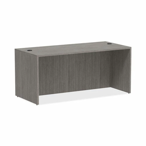 Durable, commercial grade laminate work surface and side panels are water, scratch, and stain resistant. The charcoal accent line under the work surface adds style and a distinctive touch. A protective edge banding helps to prevent damage from bumps. Two grommets for cable and wire management to tuck away your computer and device cords. Full-length modesty panel for added privacy.