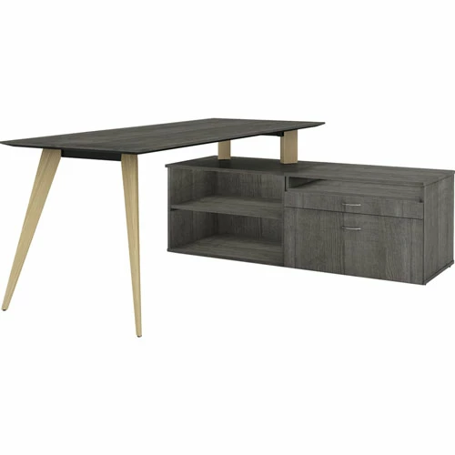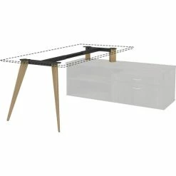 Natural wood desk frame provides the foundation for tabletops/desktops in the Lorell Relevance Series, versatile and stylish office furniture that configures to meet your needs. This short frame on one side adds a special, space-saving dimension to your office configurations, letting you set up at least one side of a tabletop/desktop over a cabinet credenza (both sold separately). Adjustable leveling feet help keep the full-length frame even on uneven surfaces. Natural solid wood legs add another layer to your decor when you pair it with Mahogany, Walnut and Weather Charcoal laminate tabletops (sold separately). The metal cross bar offers reliable stability. Desk frame adjusts to support 60″ x 30″ and 72″ x 30″ L-shaped desks.