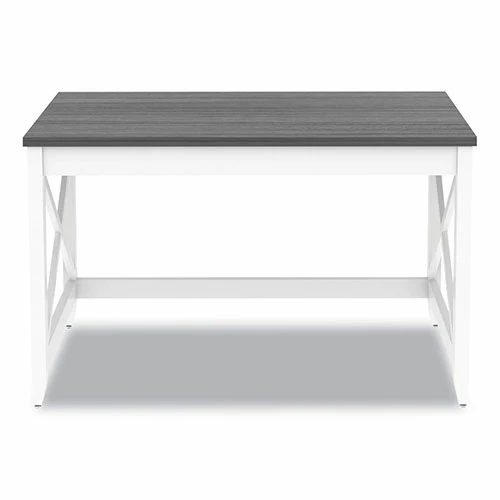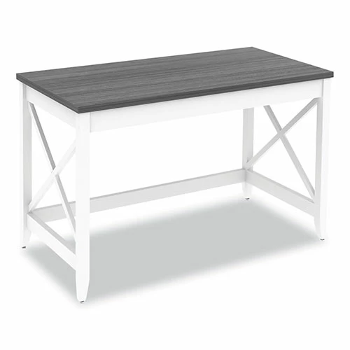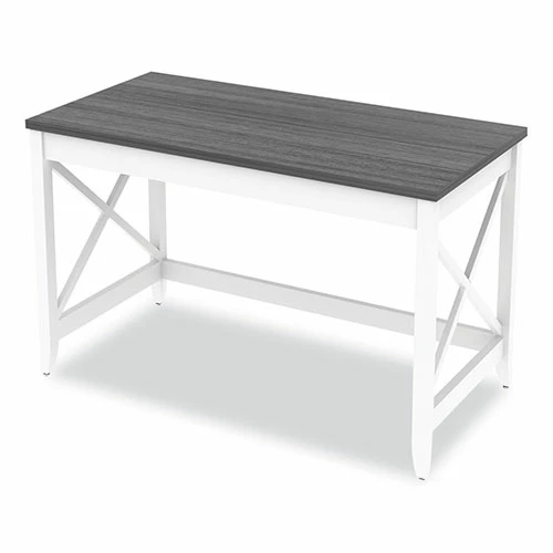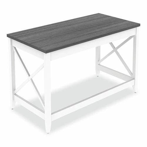 Stylish farmhouse desk with X accents on side panels fits into the dΓ©cor of most spaces. The multi-function desk is constructed with a smooth, laminate wood top with white wood legs. The simple design without drawers can be used as a desk or console table. The wide top surface provides ample space to work or to display decorative items. Thoughtfully finished on all sides for position flexibility within a room. Some assembly is required.