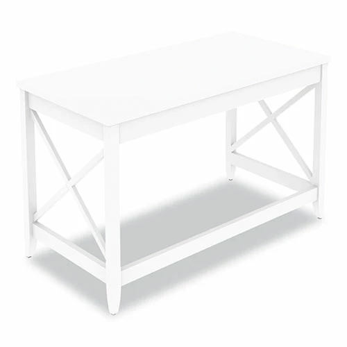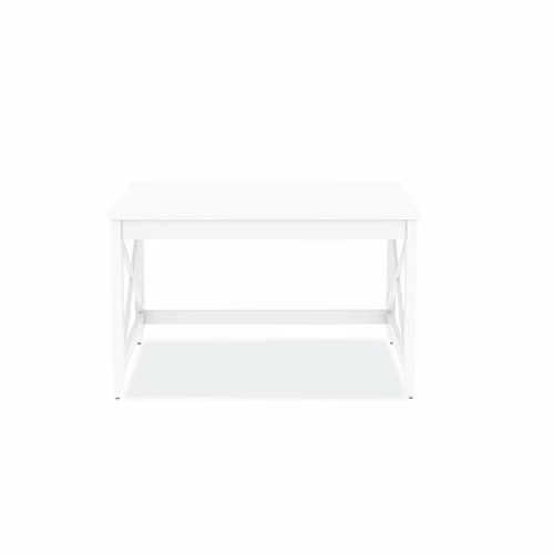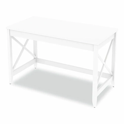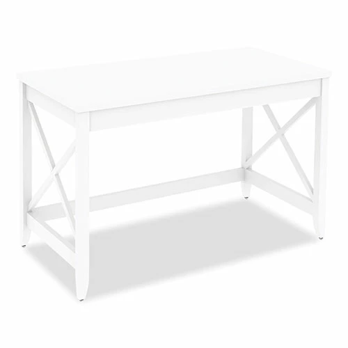 Stylish farmhouse desk with X accents on side panels fits into the dΓ©cor of most spaces. The multi-function desk is constructed with a smooth, laminate wood top with white wood legs. The simple design without drawers can be used as a desk or console table. The wide top surface provides ample space to work or to display decorative items. Thoughtfully finished on all sides for position flexibility within a room. Some assembly is required.
