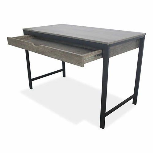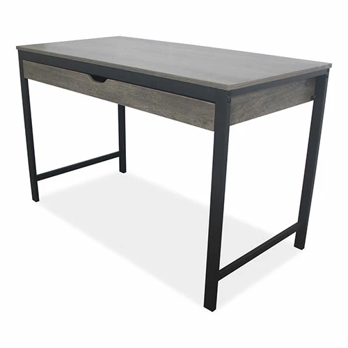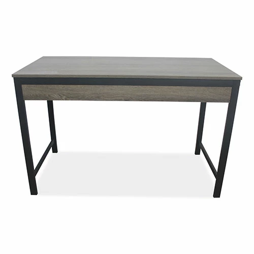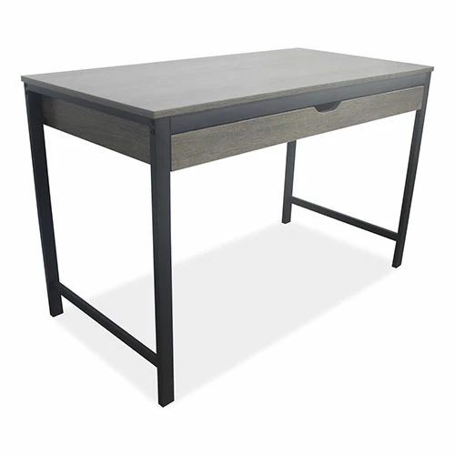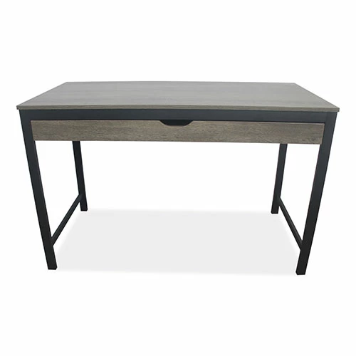 Modern writing desk with large drawer for storage is ideal for working or studying. Constructed with a smooth, laminate wood top with durable, steel legs. The wide work surface is ideal for managing multiple tasks at once. The simplistic, multi-function design can be used as a desk or console table. The open design has a light, airy feel, and coordinates with most spaces. Finished on all sides for position flexibility. Some assembly is required.
